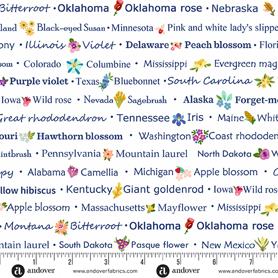 Andover Fabrics - Floral States of America - A-962-L - State Names Text White