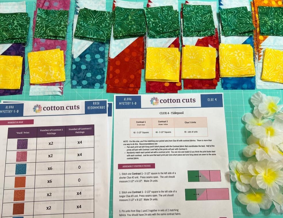 At Cotton Cuts, we knew right away we had to join the fun. Much like our wildly popular Puzzle Mystery Quilt, this program taps into the excitement of “How’s it all going to come together?”—but on a much faster track.