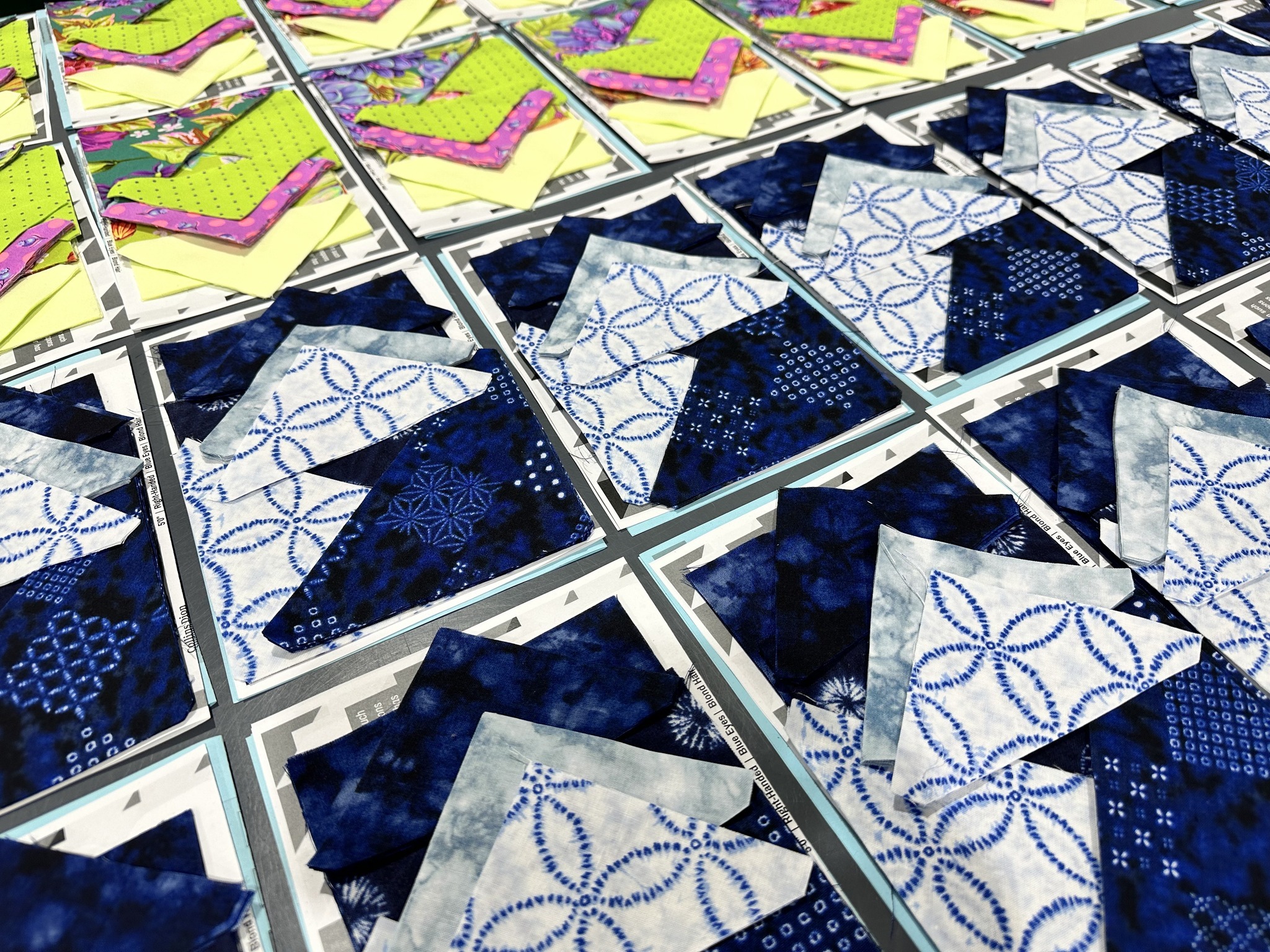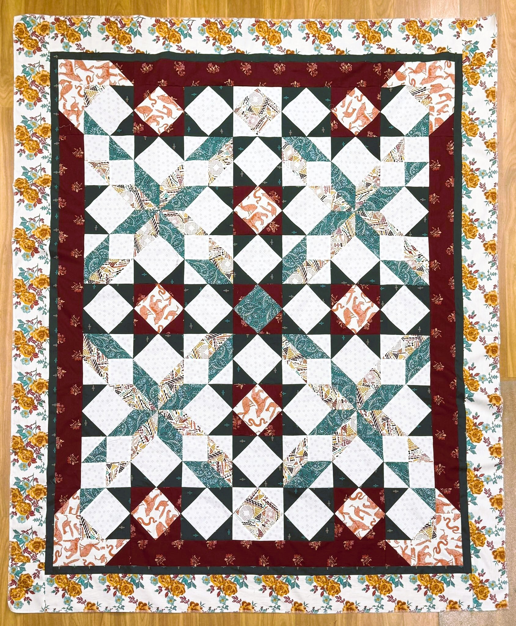 Flyway is unique in its final design because, unlike our previous PMQ patterns, it doesn’t revolve around a central centerpiece that radiates outward. Instead, the design focuses on four stars, creating a balanced composition in a fresh, new way — offering a different perspective on Puzzle Mystery Quilt patterns. It’s fresh, new, and an inspired surprise for all PMQ detectives, both new to the program and long time participants.