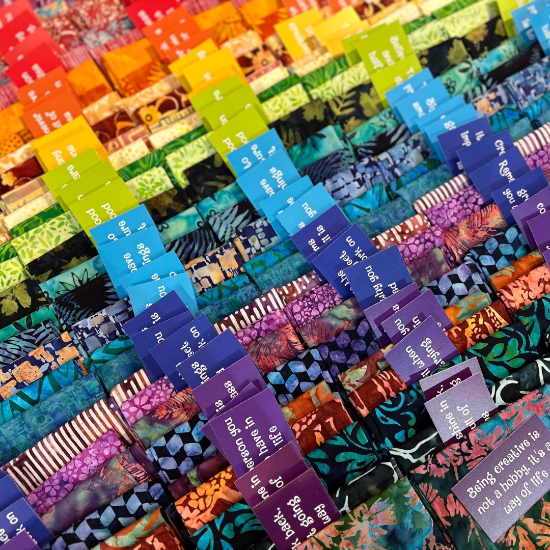 Follow the pattern provided—or go rogue and create your own design! Over time, you’ll collect 12 color sets that assemble into a 48” x 60” finished quilt top, complete with binding included.