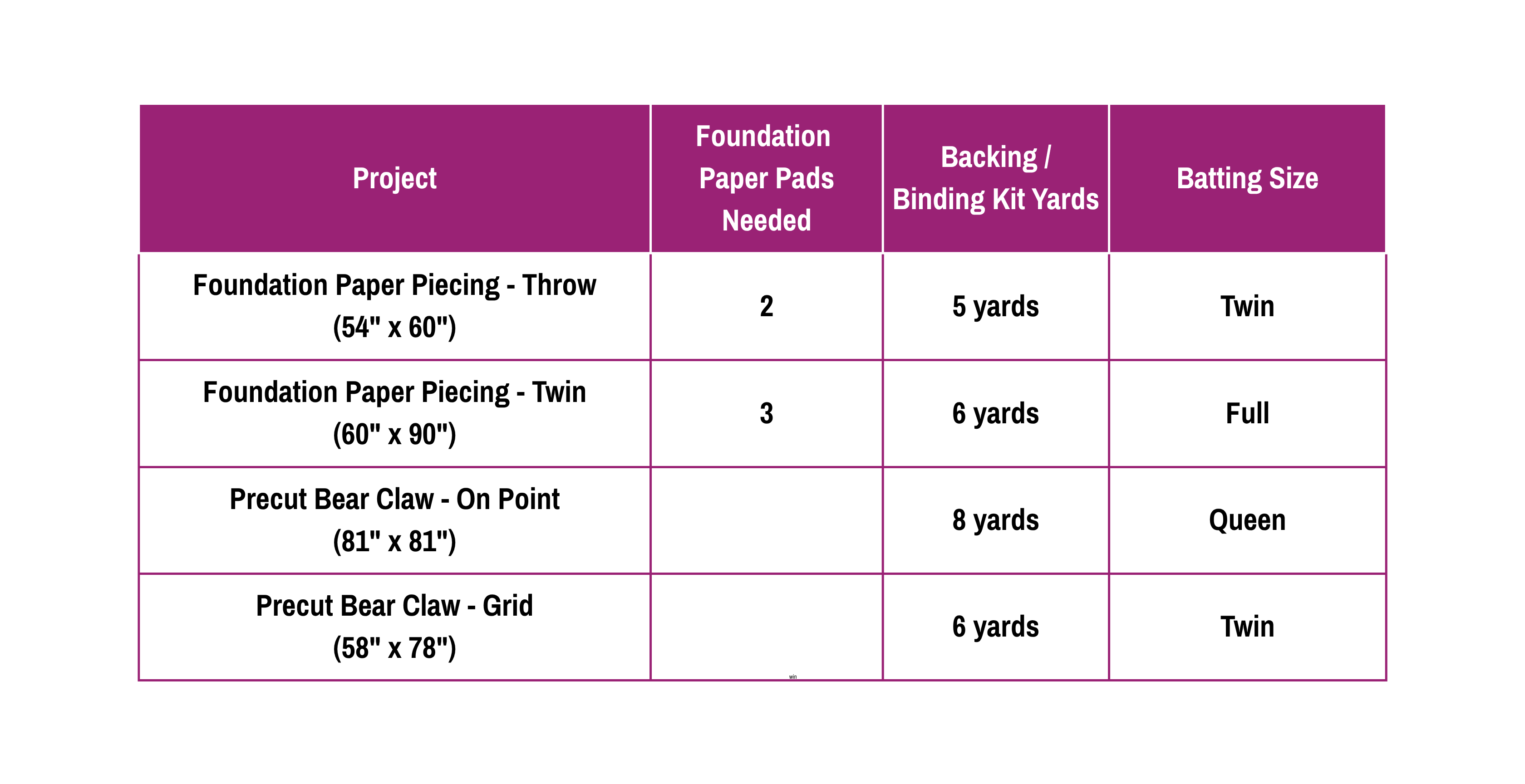 London Calling - Backing and Binding Fabric Shop (Standard width of fabric) Pick your fabric, pick your project and we'll send you the fabric needed for your backing and binding (fabric to be the same). Foundation Paper Piecing - Throw - 5 yards Foundation Paper Piecing - Twin - 6 yards Precut Bear Claw - On Point - 8... MSRP: Was: Now: $75.00 - $120.00 Choose Options
