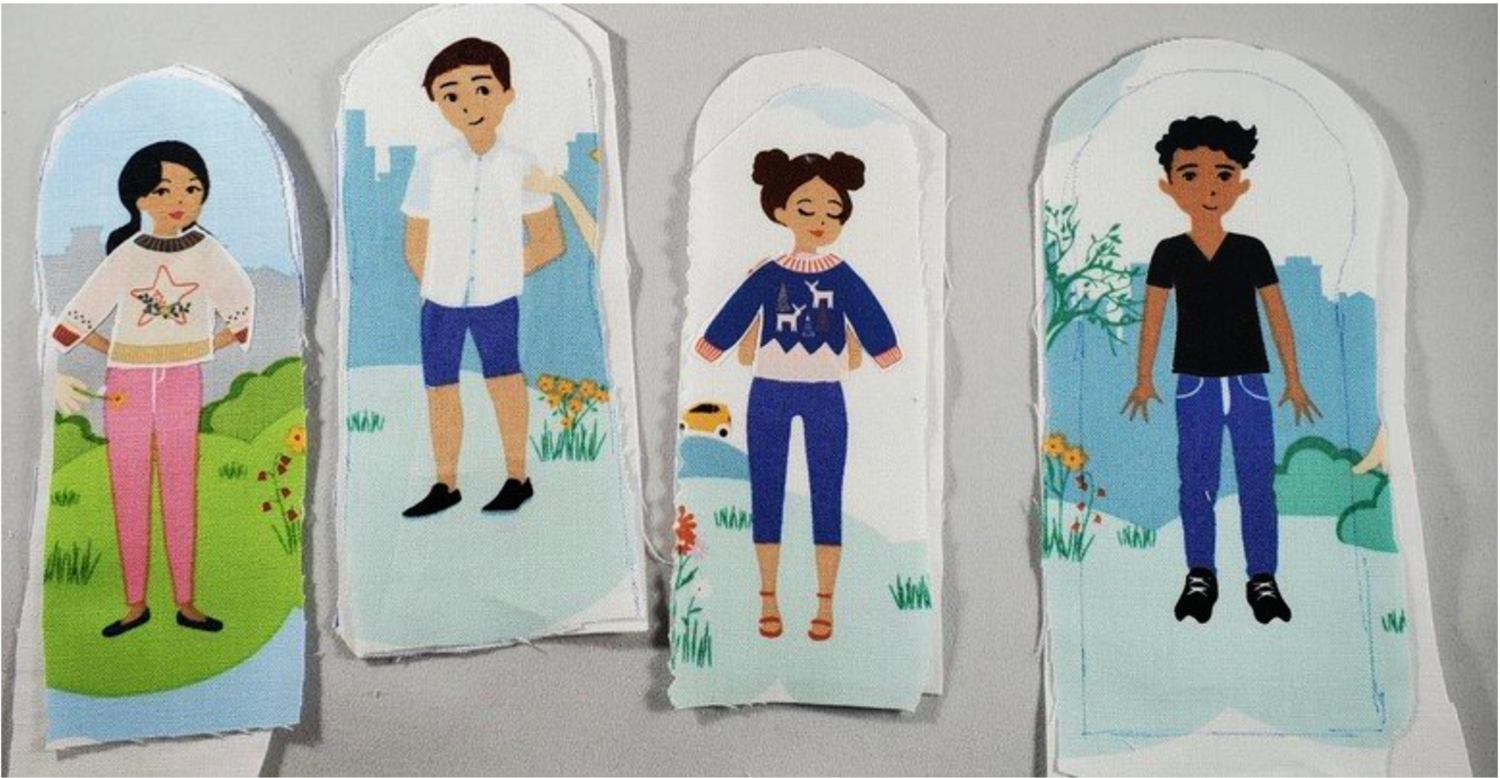 Using double sided fusible Pel-Tex circle cut to the appropriate size and fuse to the bottom creating a flat surface so the people can stand upright easily. It does take quite a bit of heat to adhere. I found it easier to place the circle on the bottom of the doll and then press firmly against the iron holding the doll perpendicular to the iron. You could also whip stitch it in place for a secure hold. In this recent blog post I shared how to make play dolls.
