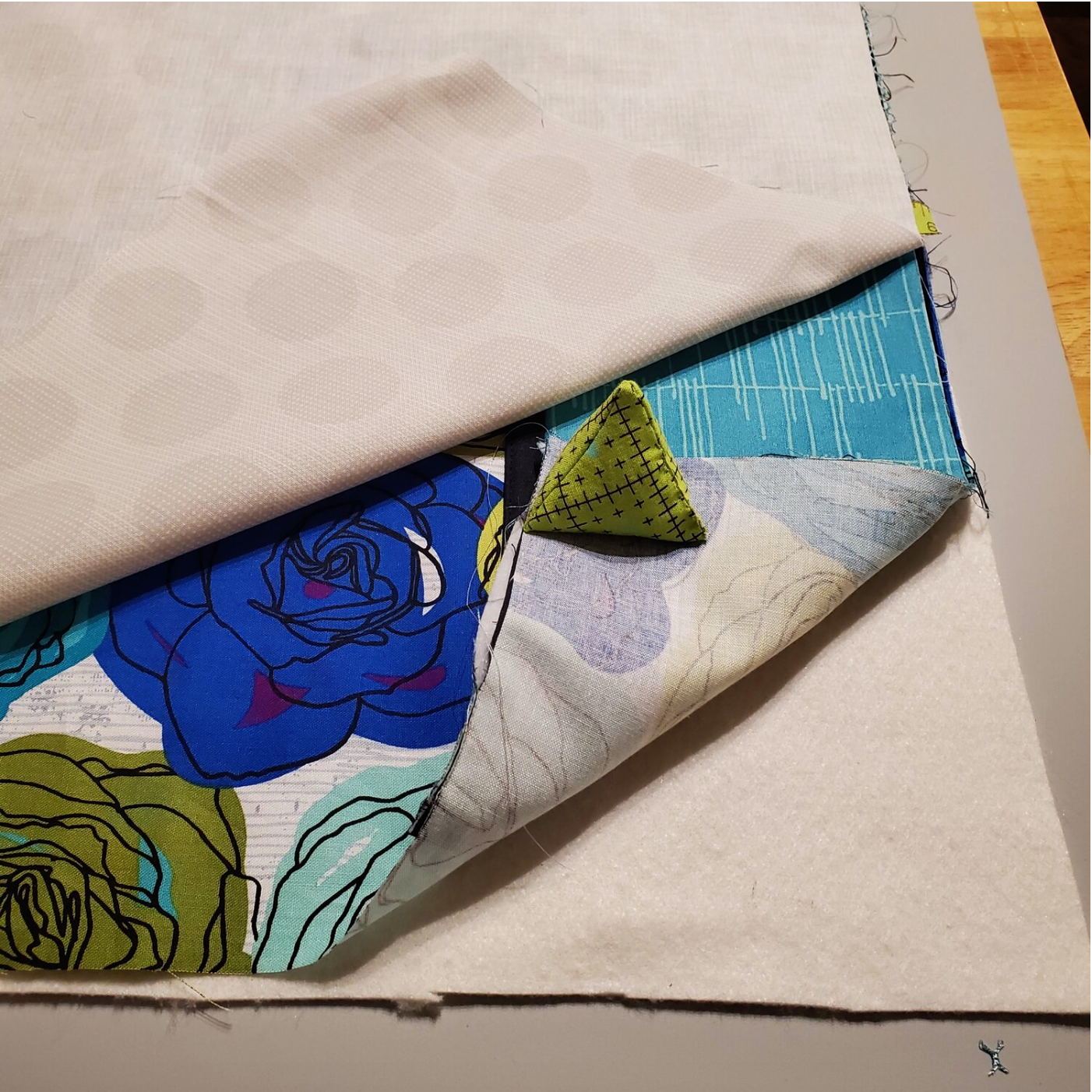 The start of the new year tends to get us thinking about tidying up our homes. If you are new to sewing or using a shared space to sew this tool organizer will help keep your notions close at hand and will be easy to pack up and put away. I was inspired to create this mat after seeing the Lilly Ella undercover maker mat. I will share with you how I constructed the sewing mat in this bright and cheery Windham Norma Rose fabric from the Classic box subscription. The finished size is 16” x 20 ½ “ a perfect size under my machine to keep my tools handy.