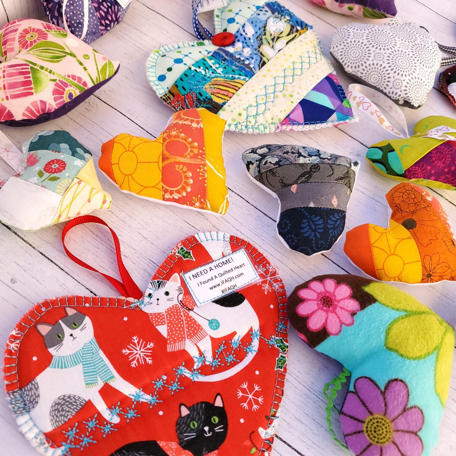 Our Cotton Cuts team members took some time this past week to create this beautiful assortment of fabric hearts to be placed in the communities in which they live and places they will visit over the holidays. Here is the link to the I Found A Quilted Heart website with the specific information on how the program works.